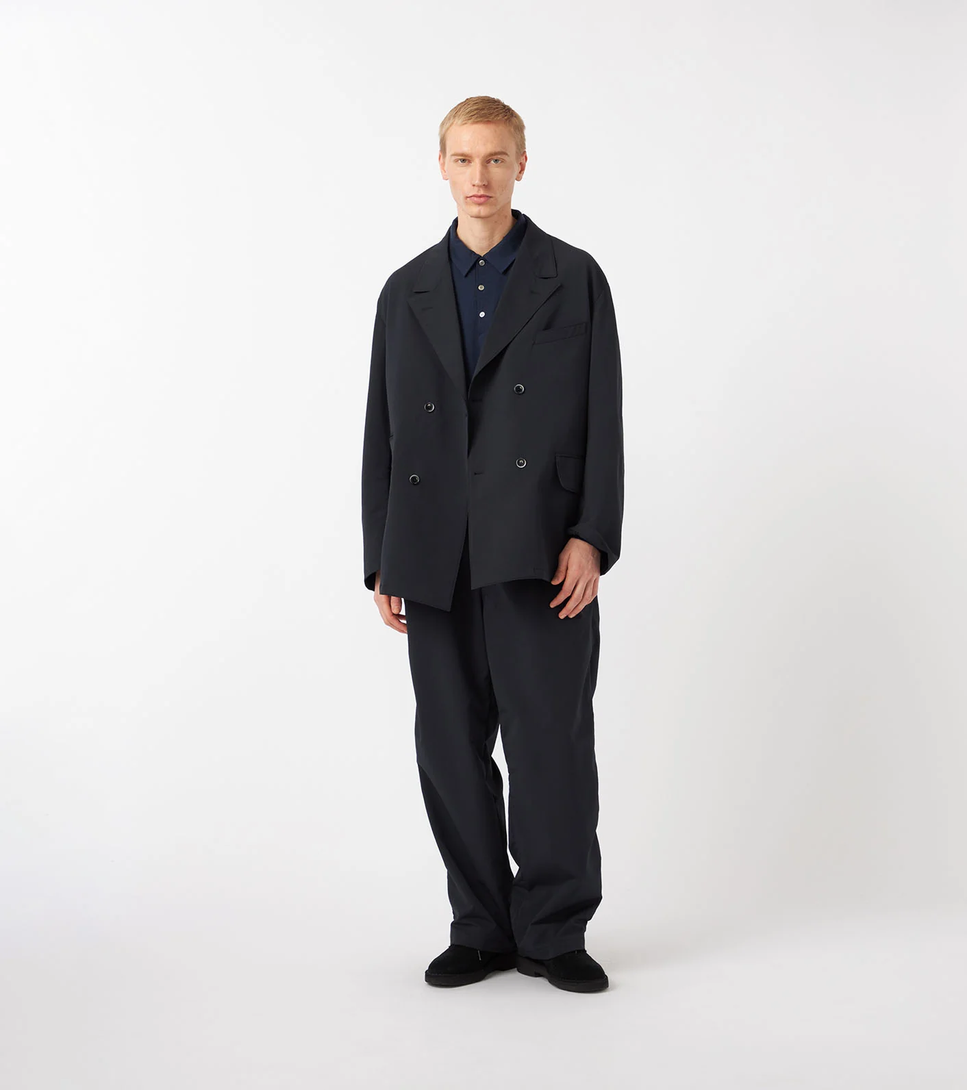・Four-button double-breasted jacket made with ALPHADRY®, featuring excellent moisture-wicking, quick-drying, and stretch properties.