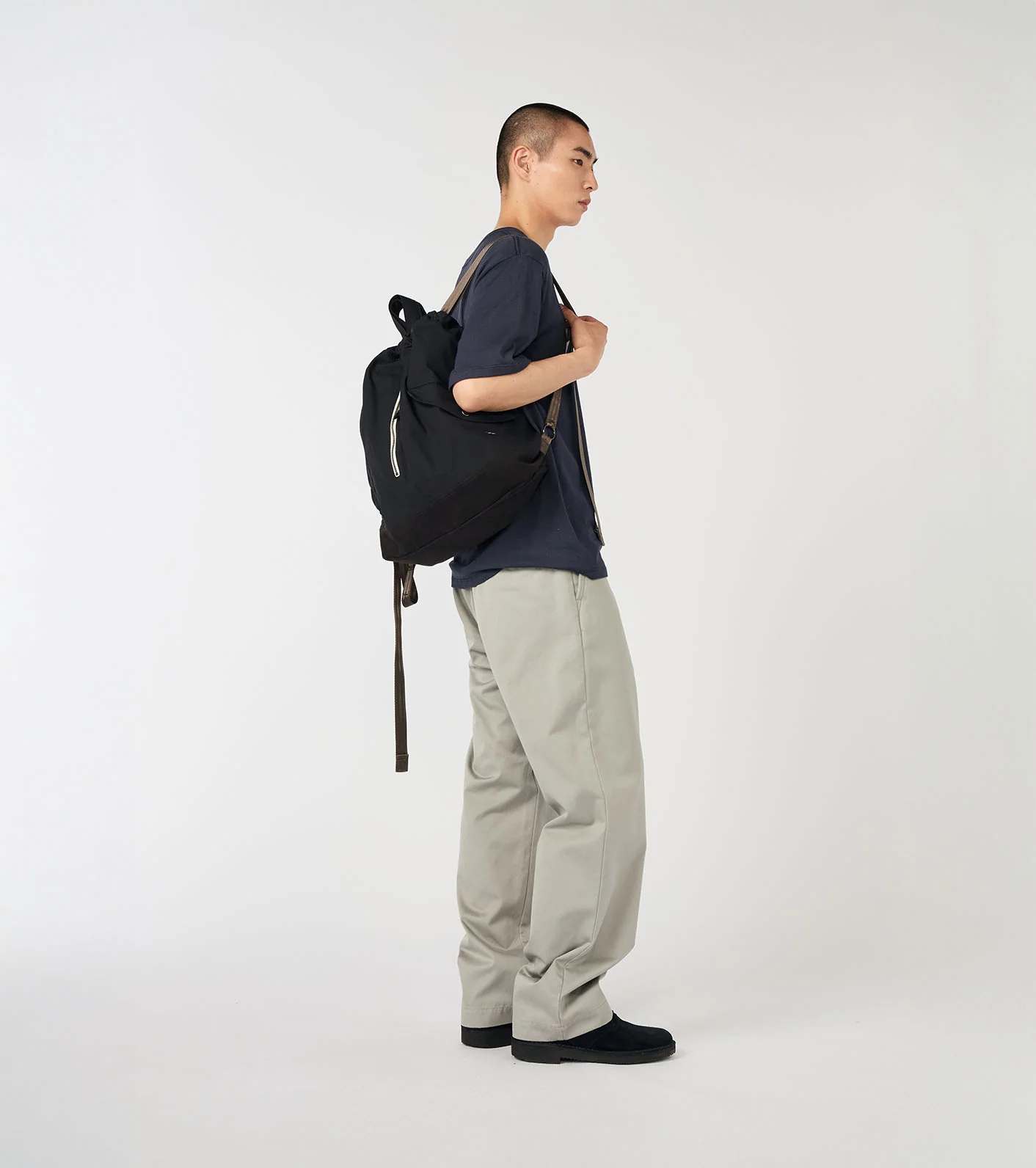 ・2-way daypack made with Taslan nylon memory fabric, featuring a natural wrinkled texture.