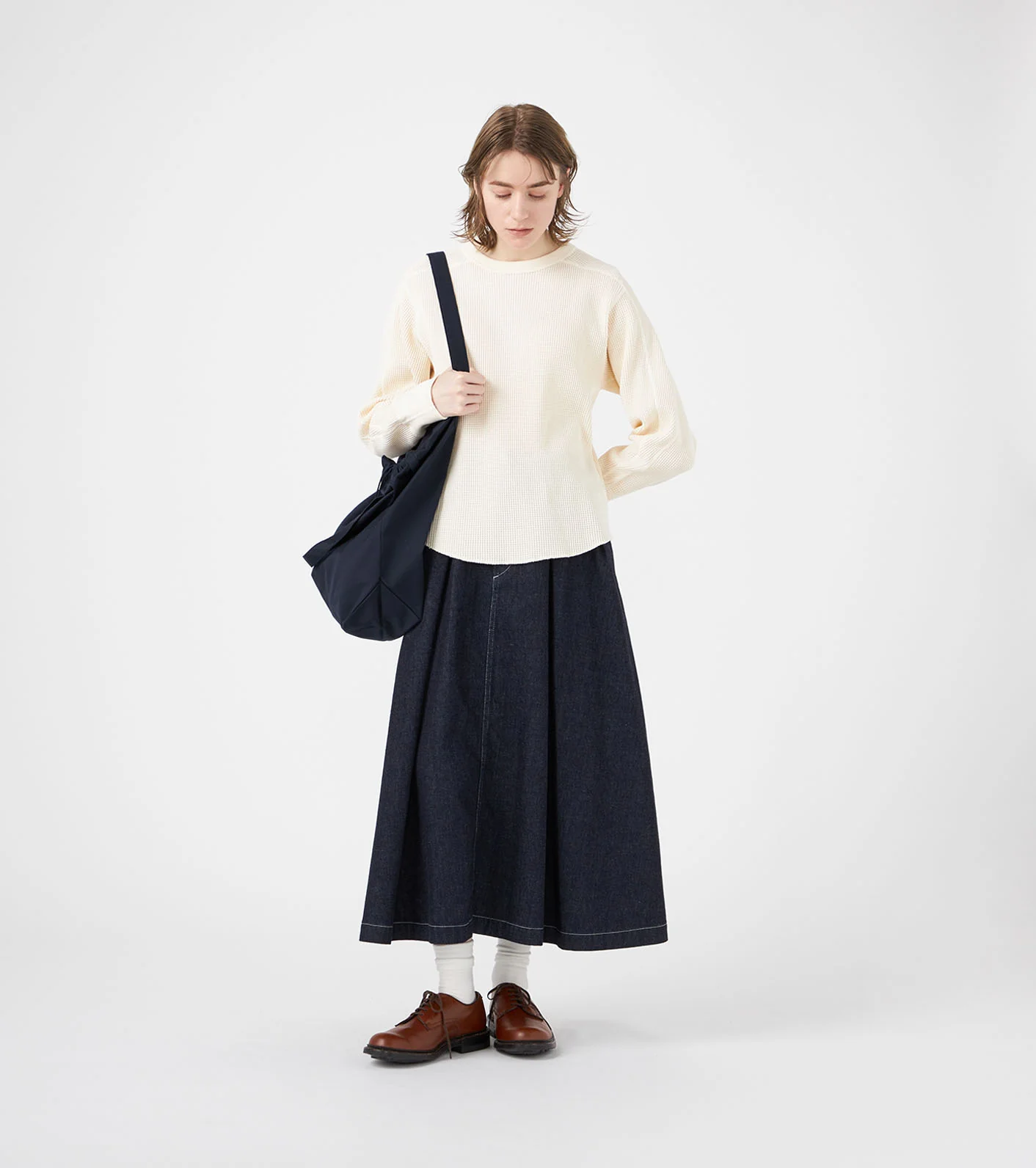 ・Authentic long denim skirt with tucks.